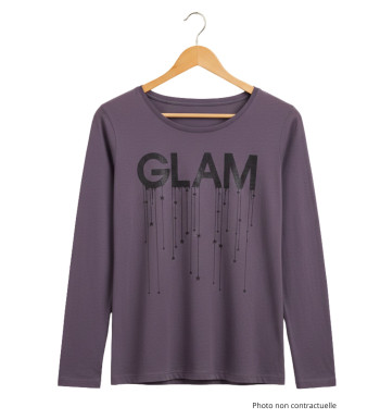 Tee-shirt femme violet manches longues – Coton, sérigraphie