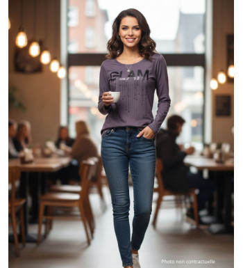Ce tee-shirt manches longues violet en coton mise sur une sérigraphie originale pour dynamiser vos looks avec style et confort. Doux et tendance, il s’invite comme une pièce forte de votre dressing féminin.