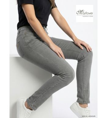 Le pantalon femme CLAUDIA3 de MAYFLOWER gris combine une maille ultra stretch, un confort exceptionnel et un look jean moderne. Un indispensable pour conjuguer élégance, aisance et style au quotidien.