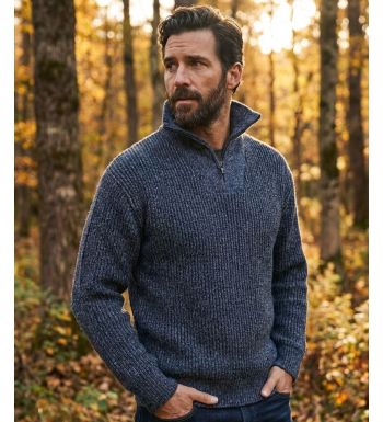 Le tricotage spécial ultra résistant en maille anglaise procure non seulement une solidité remarquable mais aussi un aspect texturé qui renforce le caractère visuel du pull. La laine cardée optimise la rétention de chaleur tout en restant respirante. Le col camionneur zippé permet de moduler votre style et votre confort thermique en un geste, que vous le portiez totalement fermé pour bloquer le vent ou entrouvert pour une allure plus décontractée.