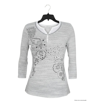Pull femme manches 3/4 KA9542A gris/blanc – Motif fantaisie